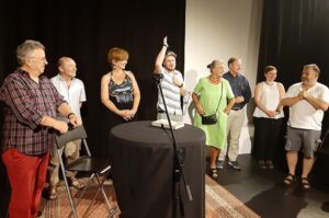 Zusammen mit Lothar Schiefer, dem langjährigen Moderator der „Tapetenpoeten“-Lesebühne am 11. September 2025 in der Stage-Gallery in Bonn.